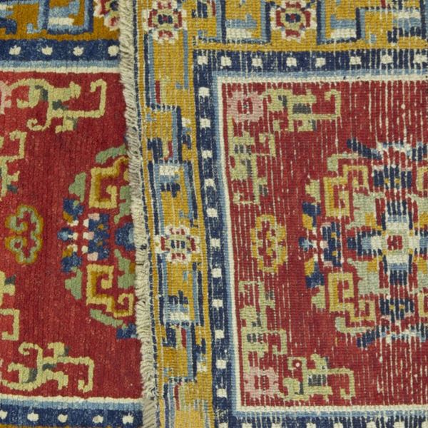 Tibet carpet with three medallions. 19th century. Good state of conservation.
