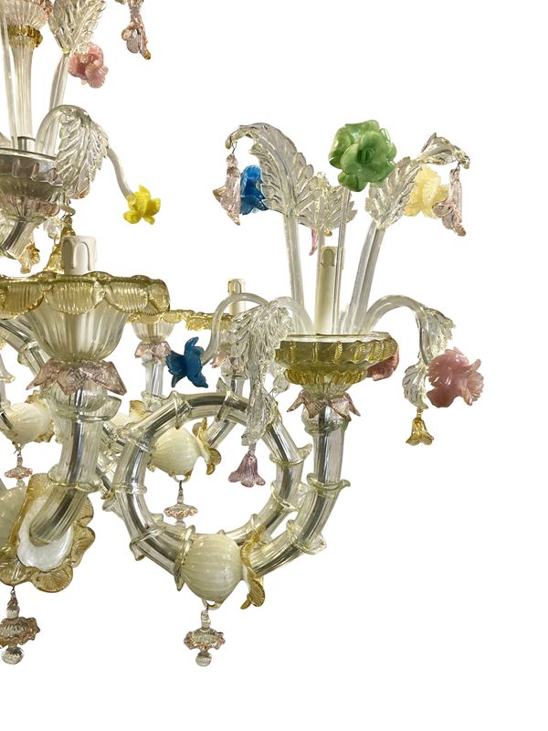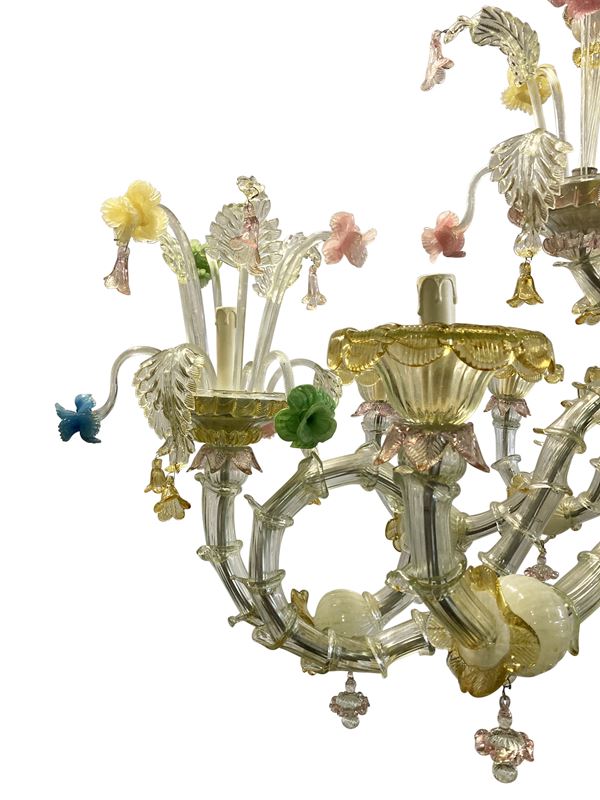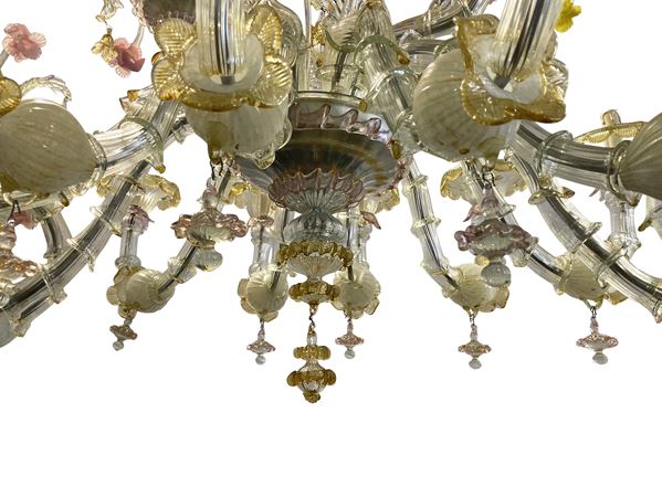 Boat chandelier twelve lights in Murano glass model Ca' Rezzonico. Venice. 20th century.