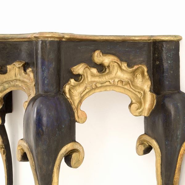 Console in lacquered and gilded wood. Sicily. 19th century. Defects and restorations.
