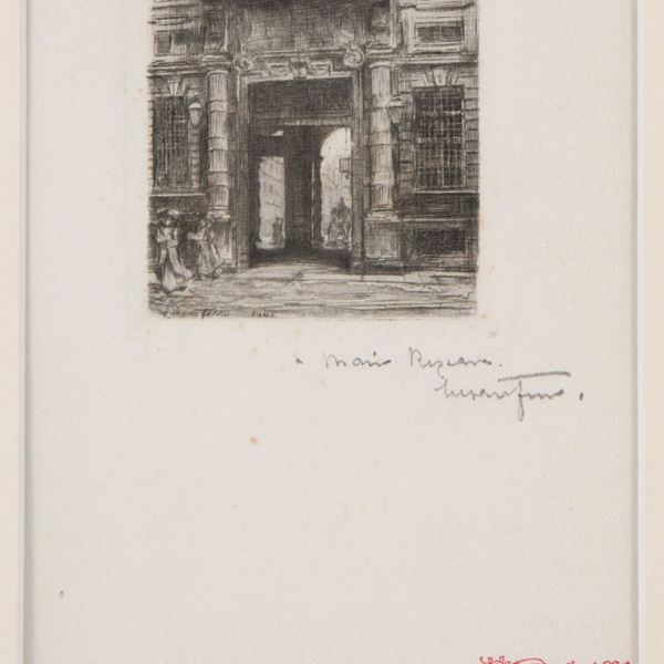 Engraving on paper depicting "ARCHITECTURE". Signed lower left. Beautifully framed.