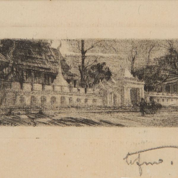 Engraving on paper depicting "MURAGLIA". Signed lower left. Beautifully framed.