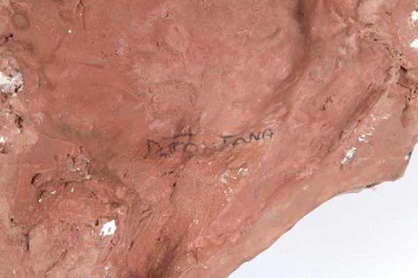 Glazed ceramic sculpture depicting "PORTRAIT OF NICCOLO' PAGANINI". Signed D. FONTANA on the back. 20th century.
