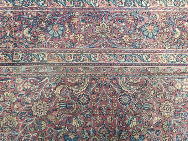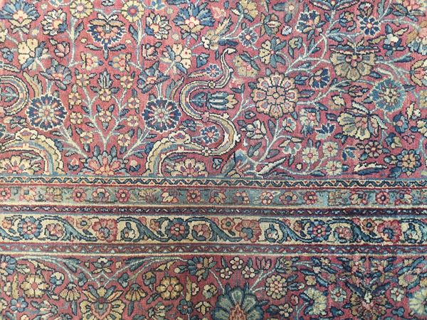 Kirman carpet. Signed master KAR AMUZ. Persia. Late 19th century. Good state of conservation, a small area is low in fleece.
