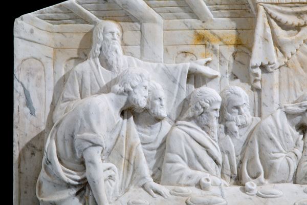 High relief in white statuary Carrara marble depicting "THE LAST SUPPER". 19th century.