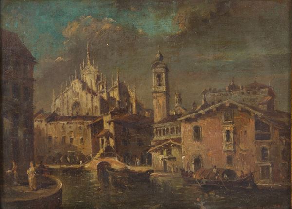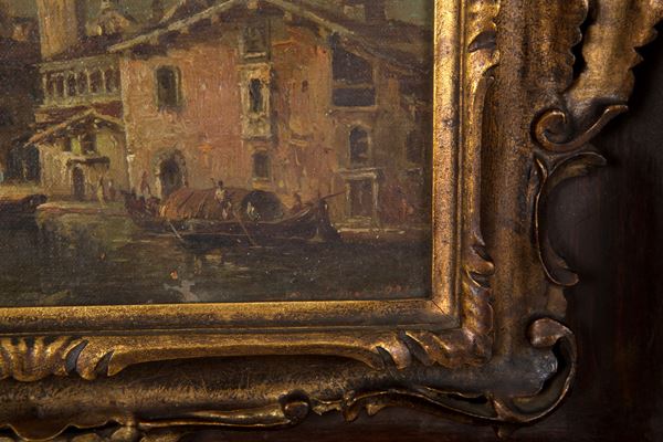 Oil painting on canvas depicting "LAKE OF SANTO STEFANO". Signature and date unidentified lower right. In carved and gilded wooden frame. Defects.