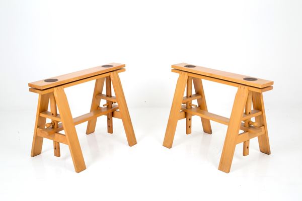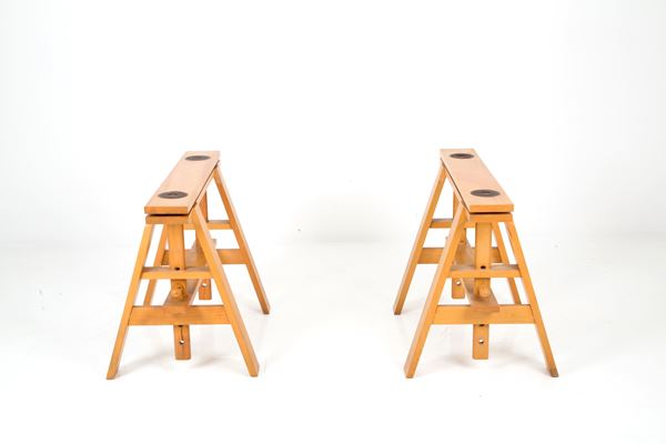 Pair of trestles Leonardo model in beech for Zanotta table. Adjustable height (minimum 62 cm approx.). 40s.