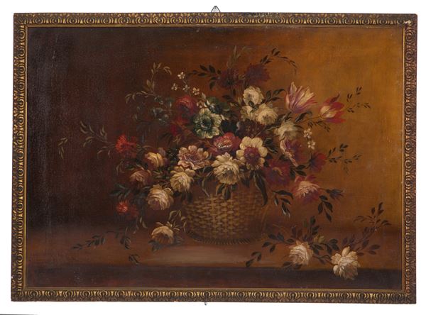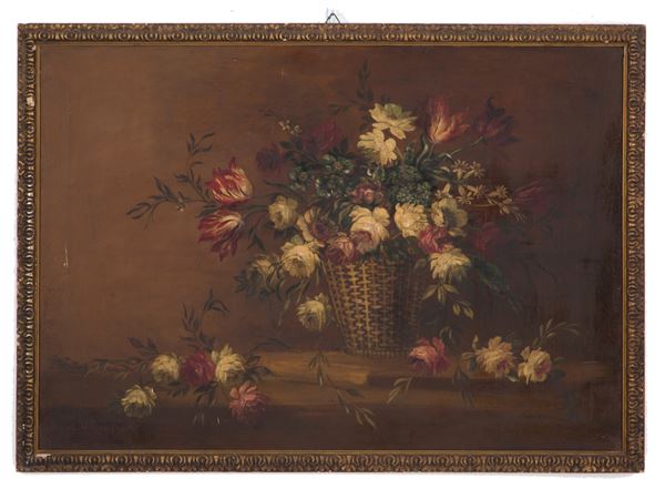 Pair of oil paintings on canvas depicting "STILL LIFES". 19th century. In frame. Slight flaws.