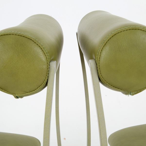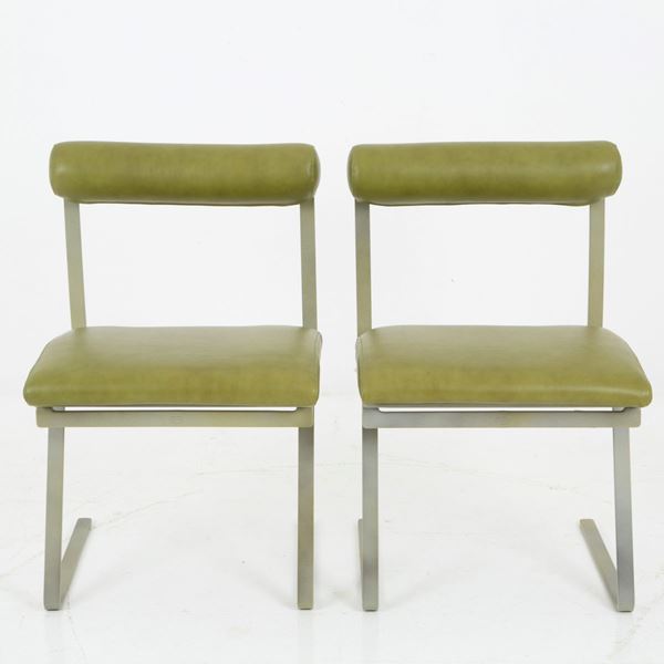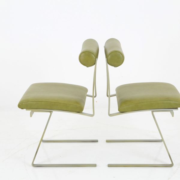 Pair of Roll chairs in steel and green leather. SORMANI production. 70's.
