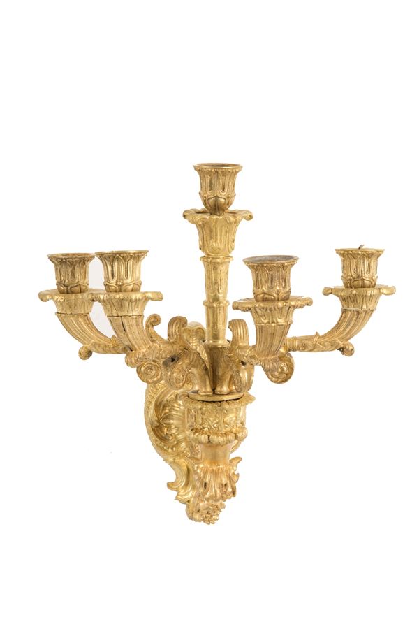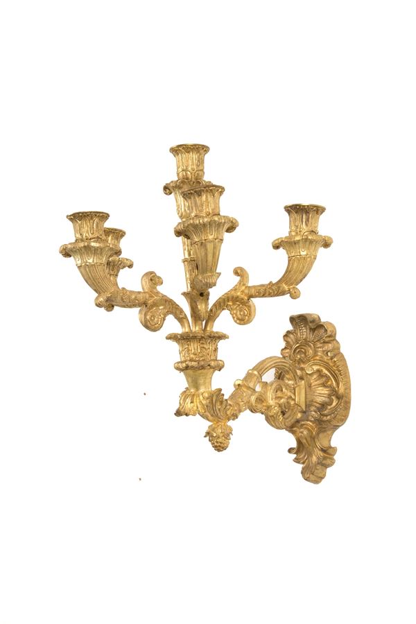 Pair of five-light sconces in chiseled and gilded bronze. 19th century.