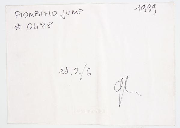 Color coupler print, montana on Diasec, "PIOMBINO JUMP, 1999". Signature, title, date and copy number 2/6 in pen on the artist's label applied on the back.