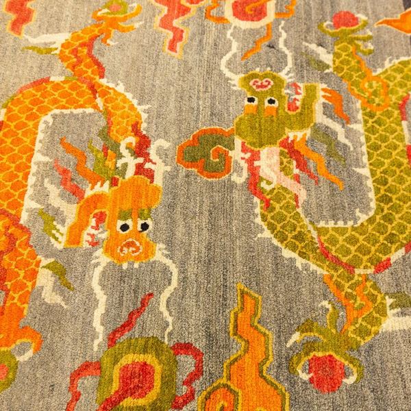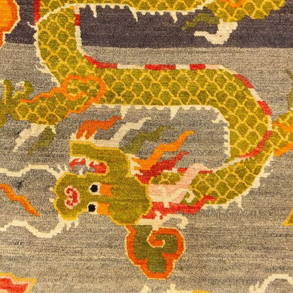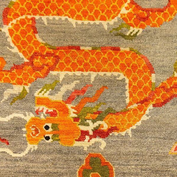 Tibet carpet with dragon design. Mid 20th century. Perfect state of conservation.