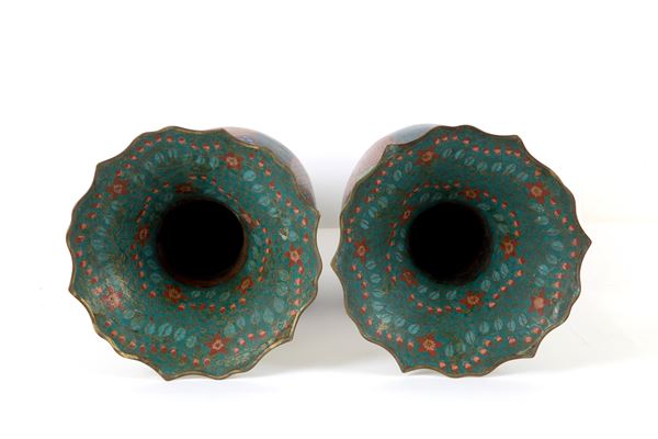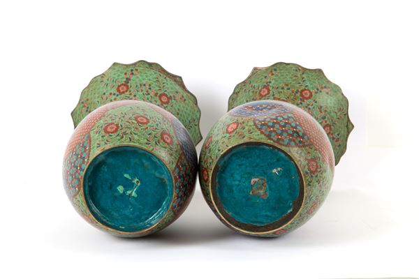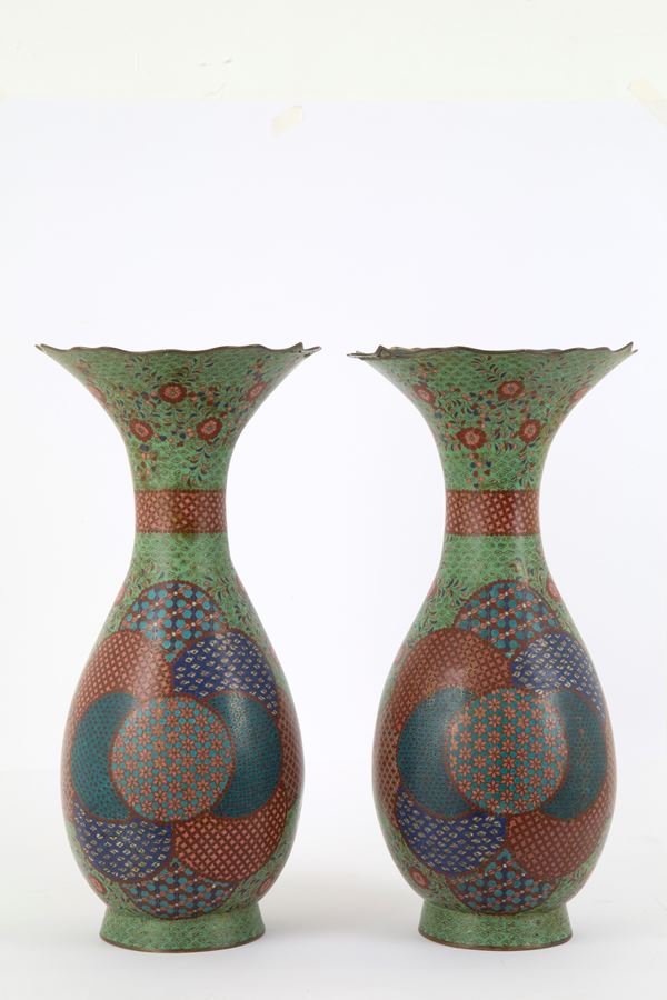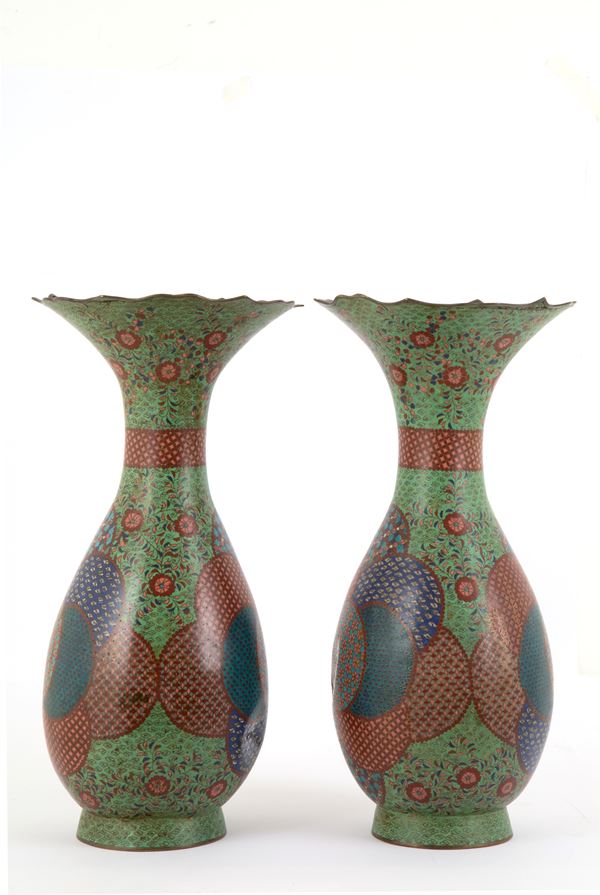 Two cloisonné vases. Japan. Nineteenth century. Defects.