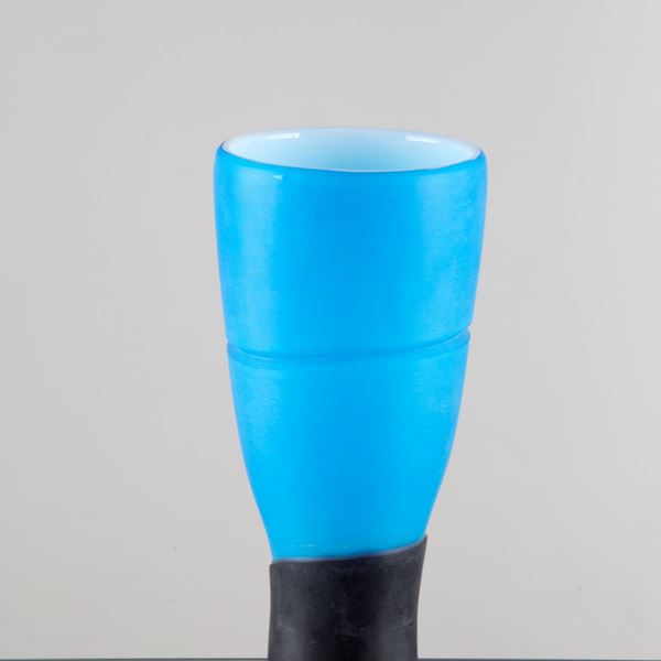 Blue, black and white Murano glass vase