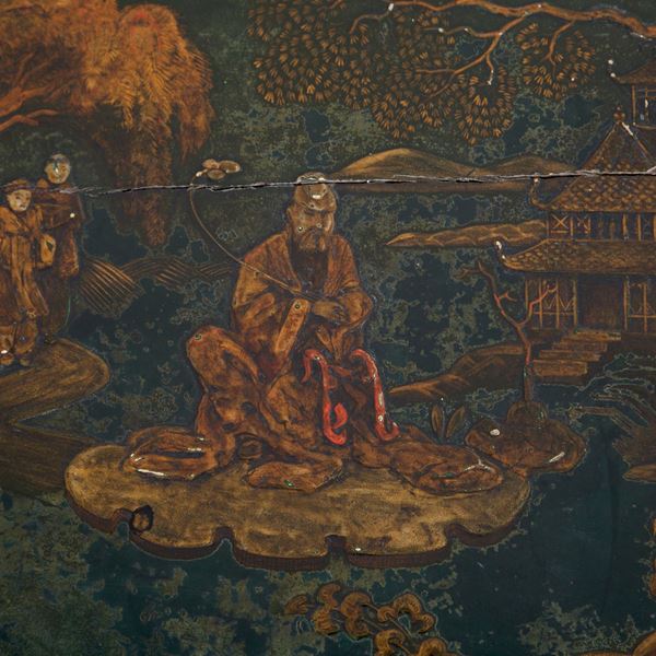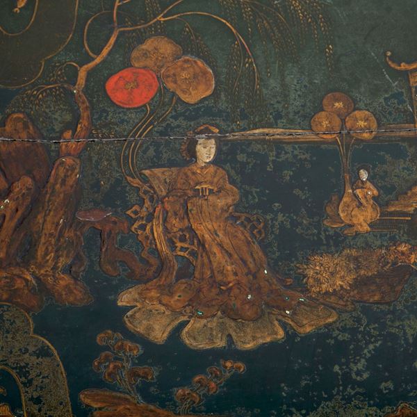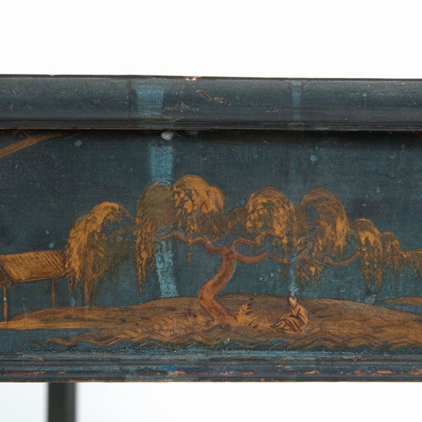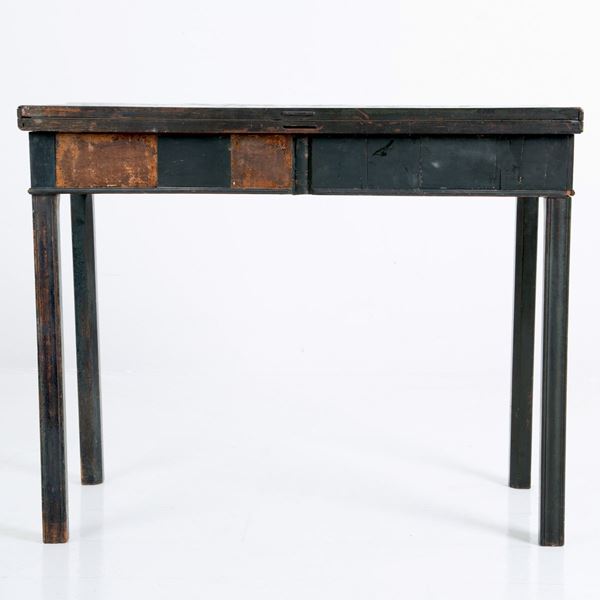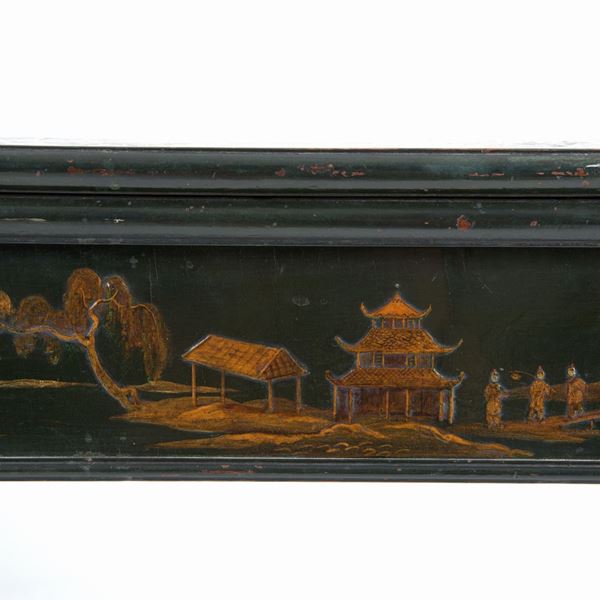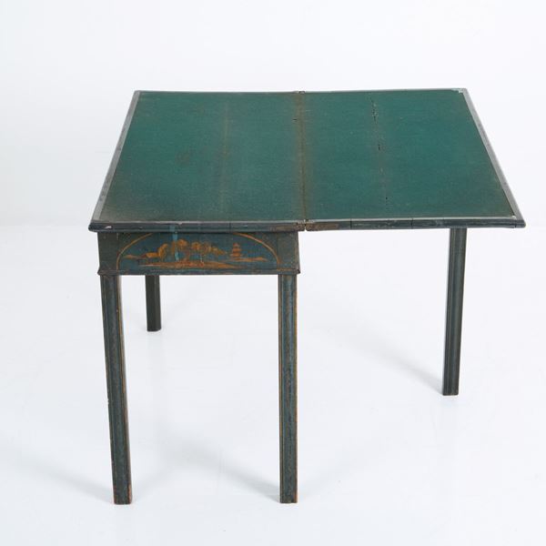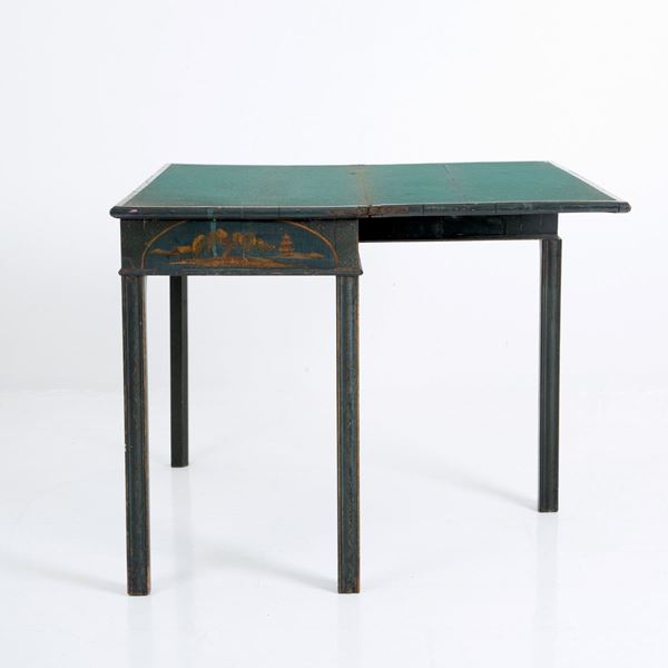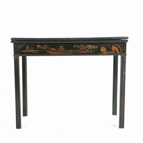 Opening game table in chinoiserie lacquered wood. 19th century. Defects and shortcomings.
