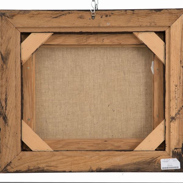 Oil painting on canvas depicting "Abstract subject". Signed lower center. In frame. With photographic authentication issued by the Borgogna Art Gallery, Milan.