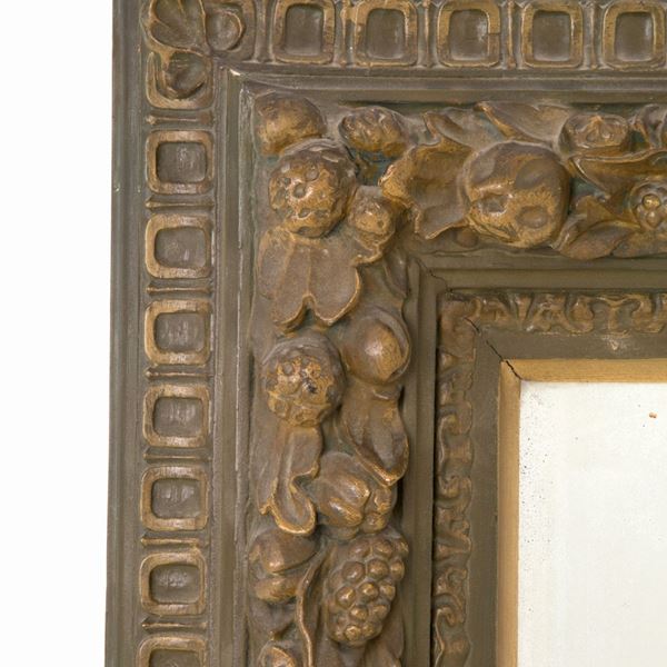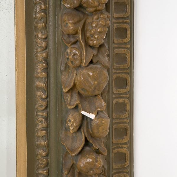 Lacquered and carved wooden frame with fruit decorations. 19th century. Slight defects.