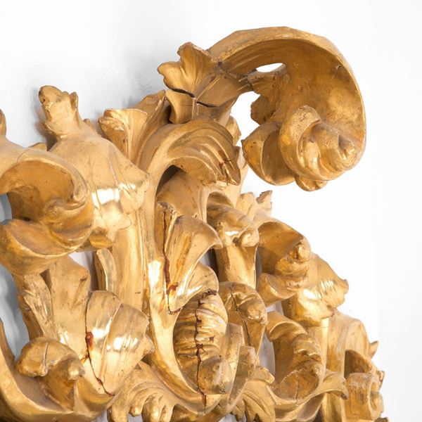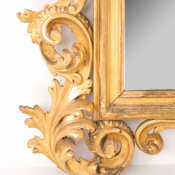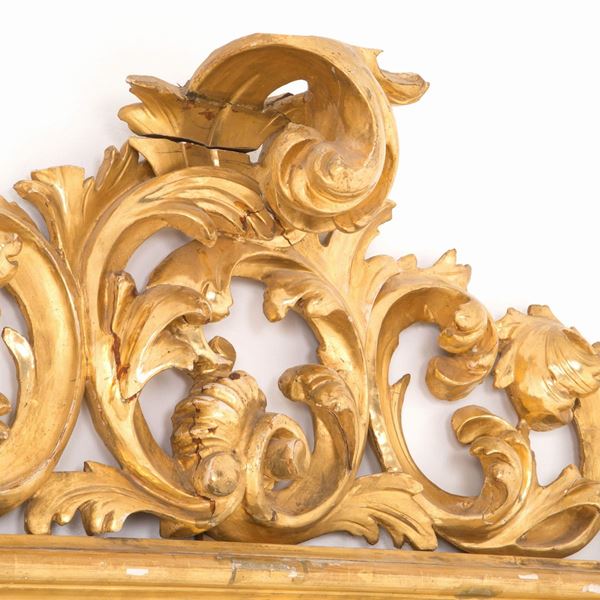 Large gilded tray mirror with floral motif friezes. 19th century. Defects.