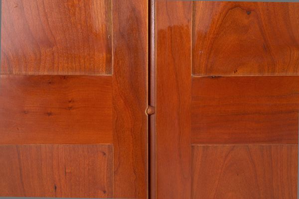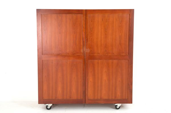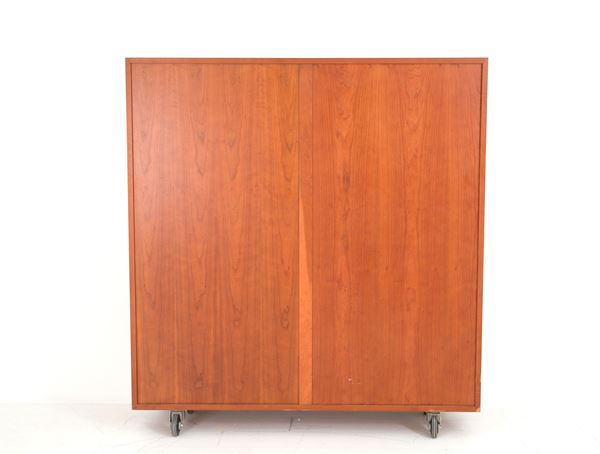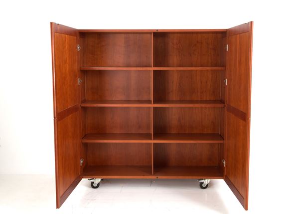 Shigeto model center wardrobe in solid wood with two doors with shelves and four swivel wheels. Production DE PADOVA. 1980s-1990s. Minor defects and signs of wear.
