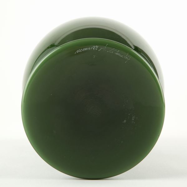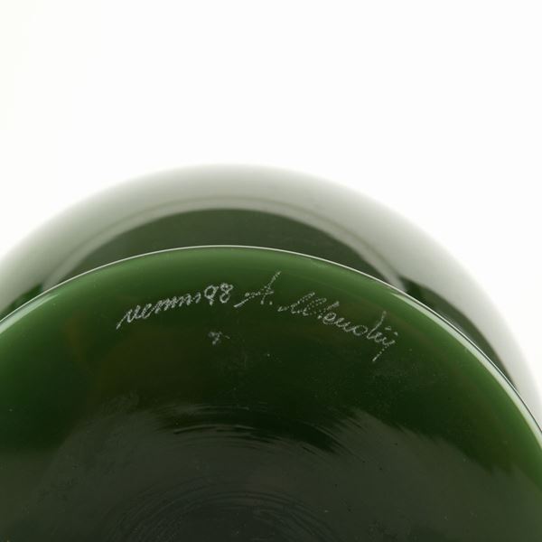 Idalion vase in green Murano glass. VENINI production. With manufacturer's label. Signed and dated '98 on the bottom.