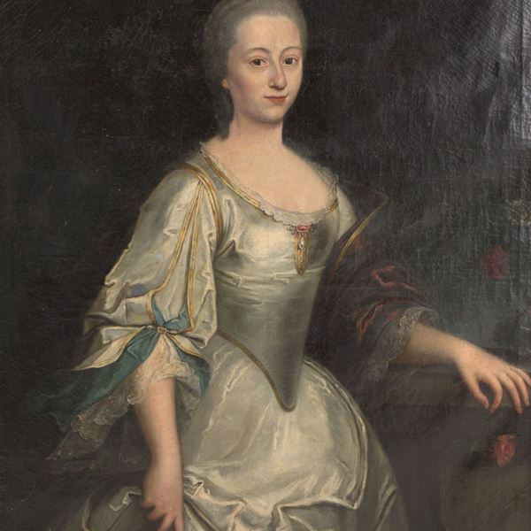 Oil painting on canvas depicting "PORTRAIT OF A LADY". 18th century. In a golden frame. Minor defects and restorations.