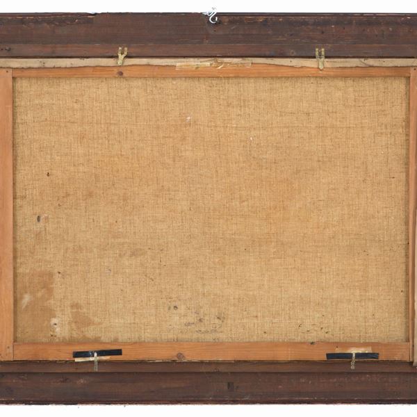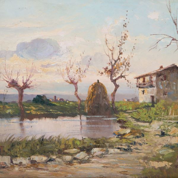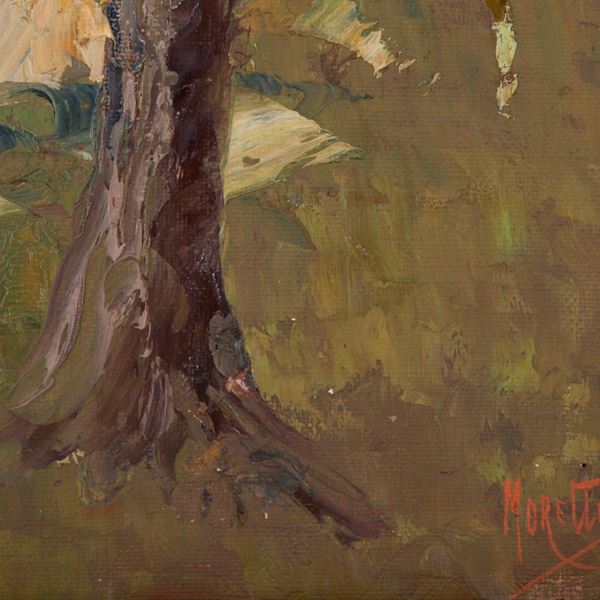 Oil painting on canvas depicting "RIVER LANDSCAPE". Signed MORETTI bottom right. 20th century. In frame.