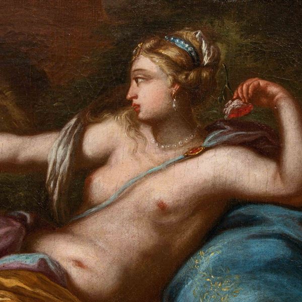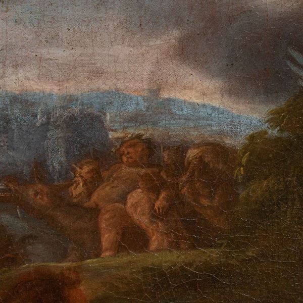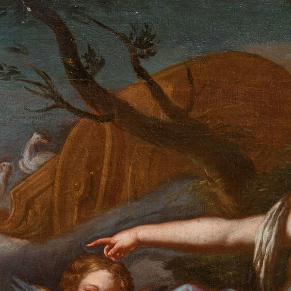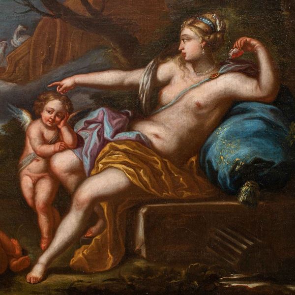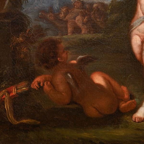 17TH CENTURY MASTER. Oil painting on canvas depicting "VENUS AND CUPID WITH BACCHIC PROCESSION". In frame.