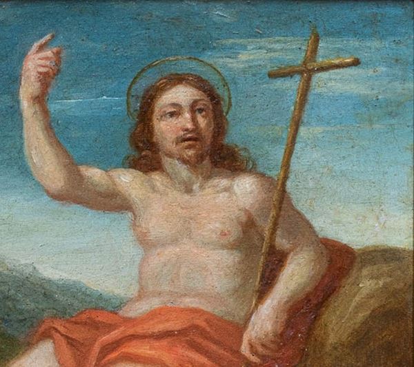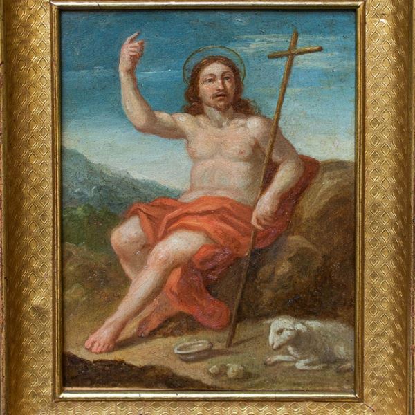 Pair of oil on copper paintings depicting “SAINT JOHN THE BAPTIST” and “SAINT JOHN THE EVANGELIST”. 17th century. In gilded frames.