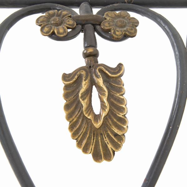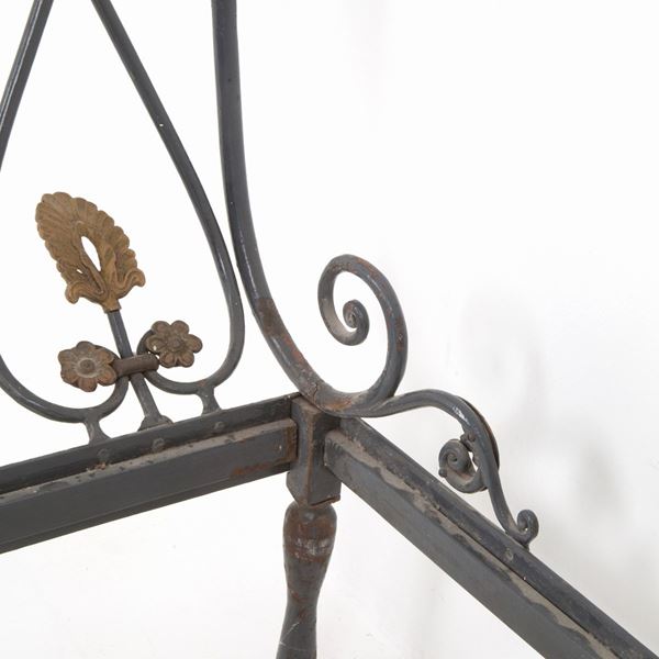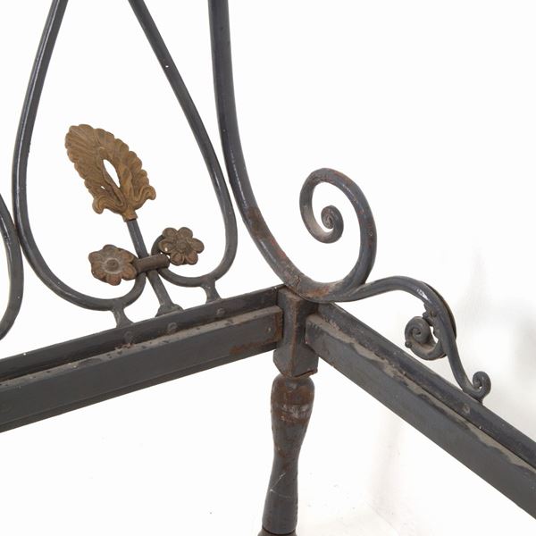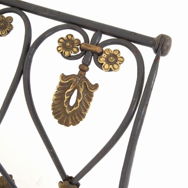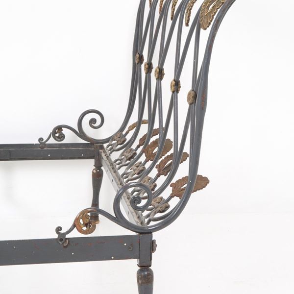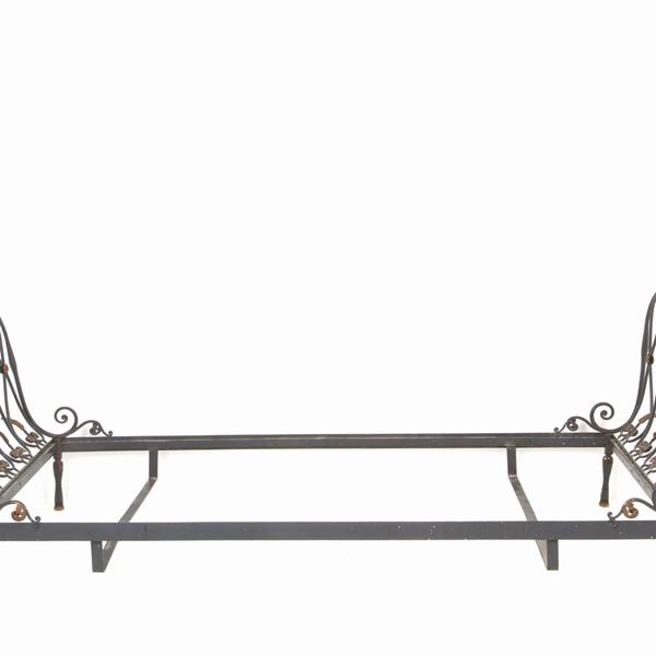 Pair of single beds in wrought iron with gilded bronze palmettes that can be joined together. France. 20th century. Defects.