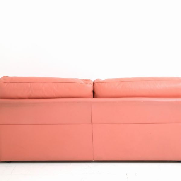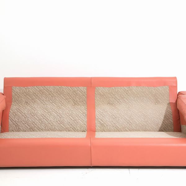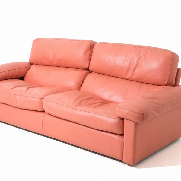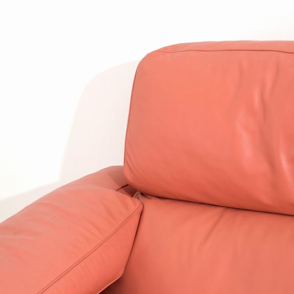 Petronio two-seater sofa in salmon-colored leather. POLTRONA FRAU production. With manufacturer's mark and cwarranty certificate. Minor defects.