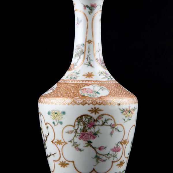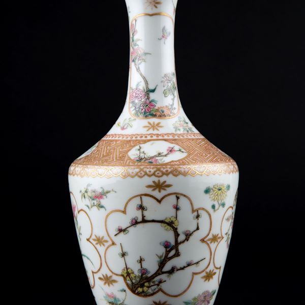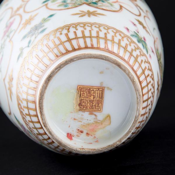 Painted porcelain vase. Apocryphal Qianlong mark on the bottom. China.