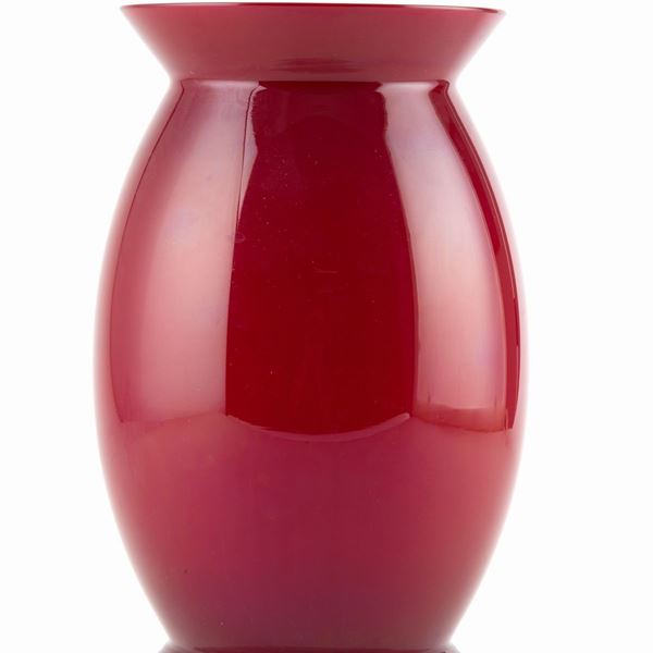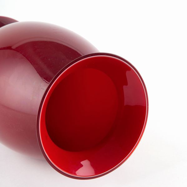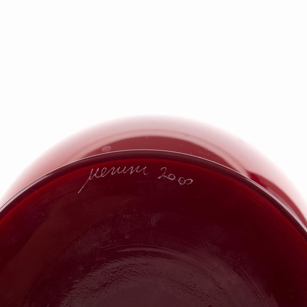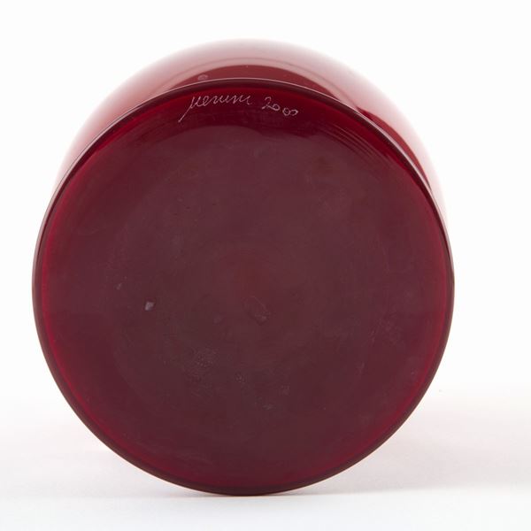 Idalion vase in red Murano glass. VENINI production. Signed and dated 2000 on the bottom.