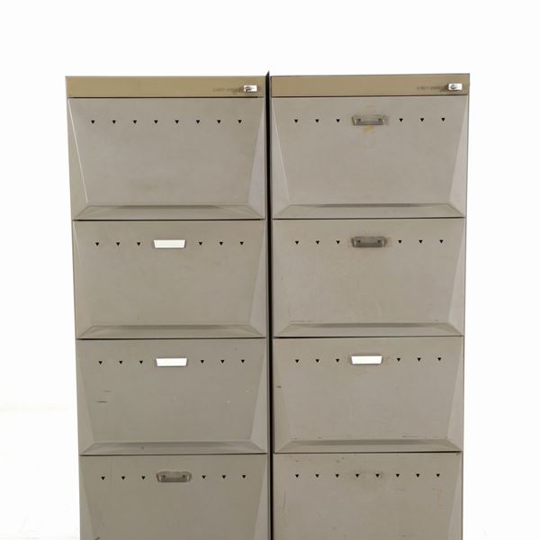 Pair of gray metal four-drawer filing cabinets. Synthesis Series. OLIVETTI production. 1960s. Signs of wear.