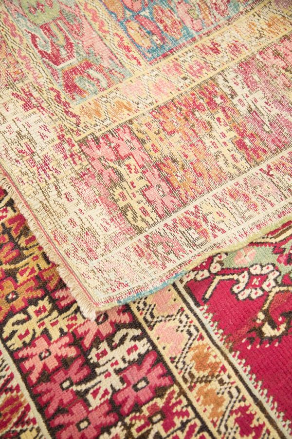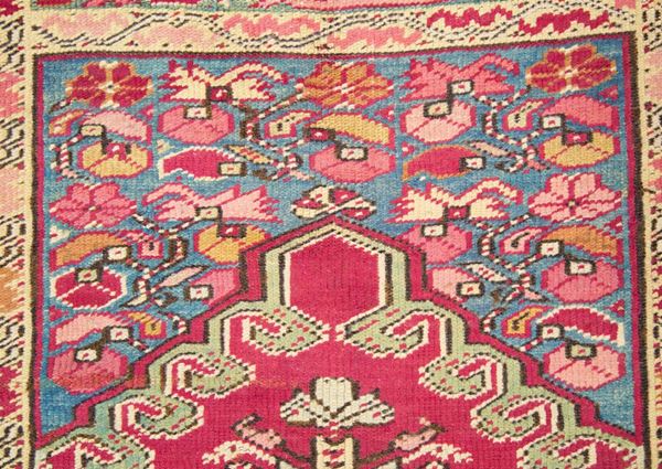 Ghiordes double niche rug. Anatolia. Late 19th century. Excellent state of conservation, natural brown corrosion.