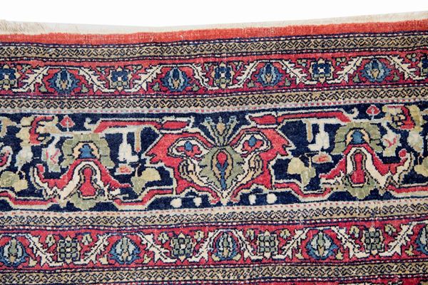 Isfahan carpet. Persia. Late 19th century. Original headers and edges, small old field restorations.