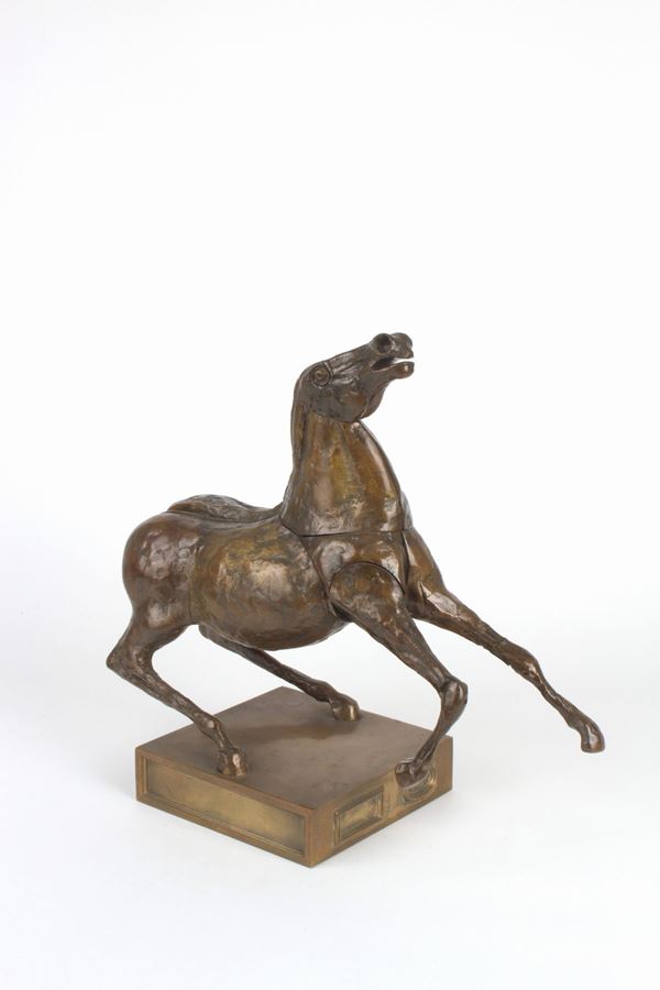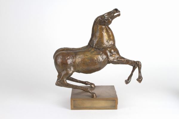 Bronze sculpture entitled "IL CAVALLO 1973" dismantled into fifteen elements. Signed at the base. Specimen 1664/2000. With certificate of guarantee issued by the Cortina_Cavour art gallery.