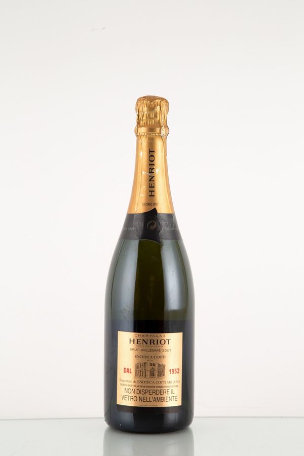 A bottle of Henriot Rosé Millésimé 2002 Champagne.