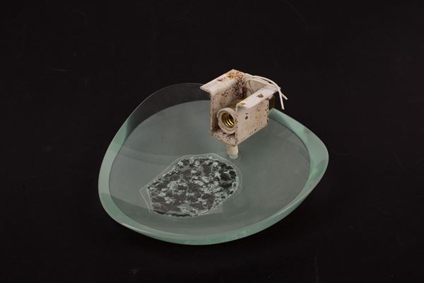 1944 model wall light in polished brass and thick, curved, ground and gem-cut satin crystal. FONTANA ARTE production. 1950s-60s. Minor signs of wear over time.