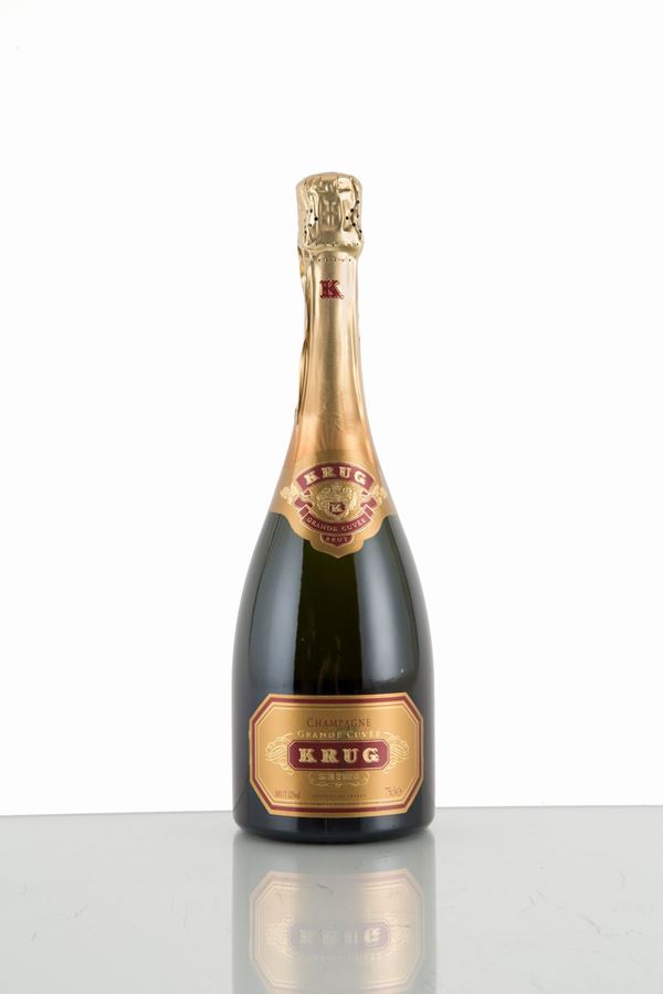 A bottle of Champagne Brut Krug Grande Cuvée. Original box set.