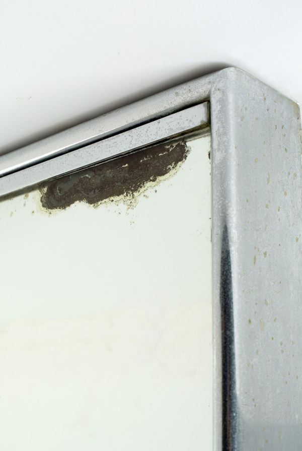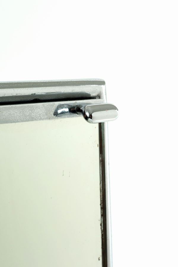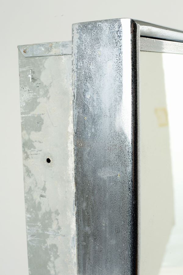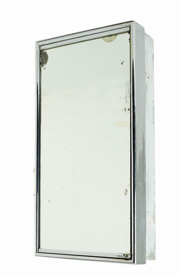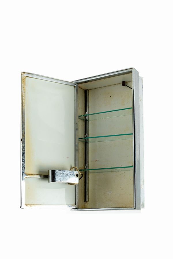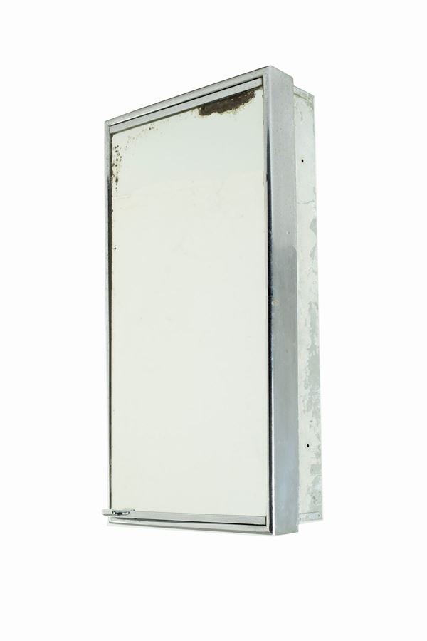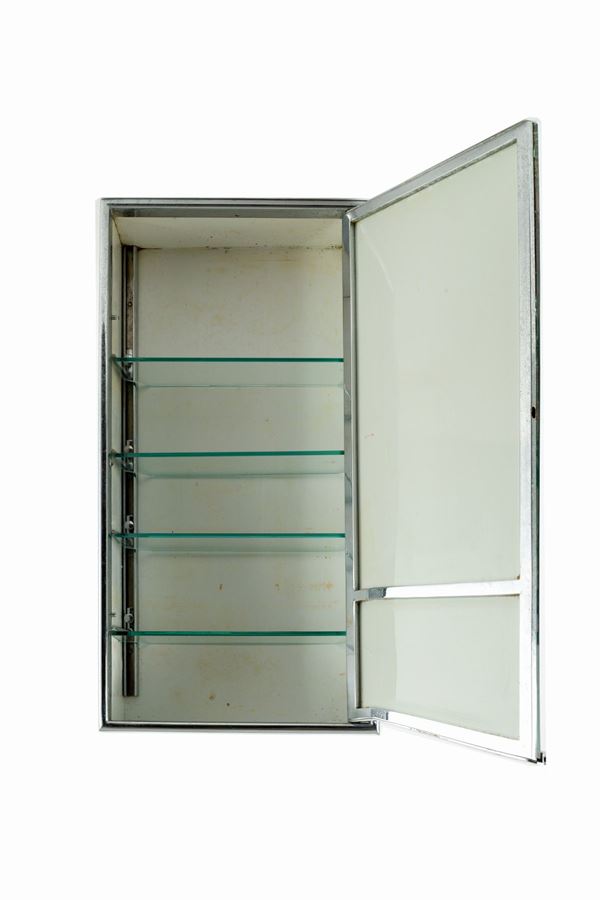 Pair of built-in bathroom cabinets in chromed metal with glass shelves. Production FONTANA ARTE (Attr.). 60's. Defects and signs of wear over time. One with internal electrical socket to be serviced.