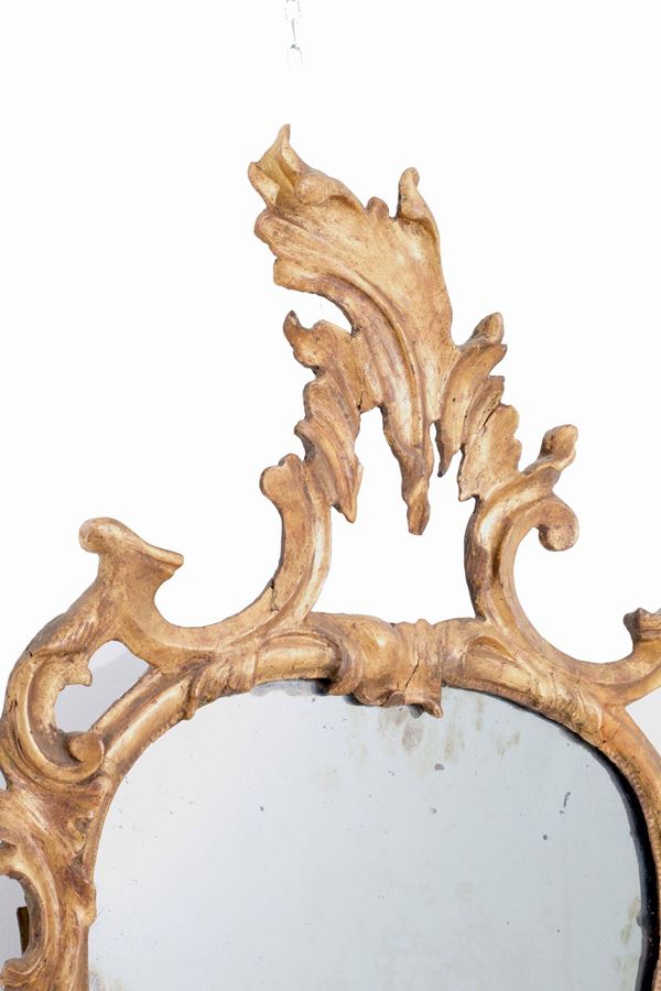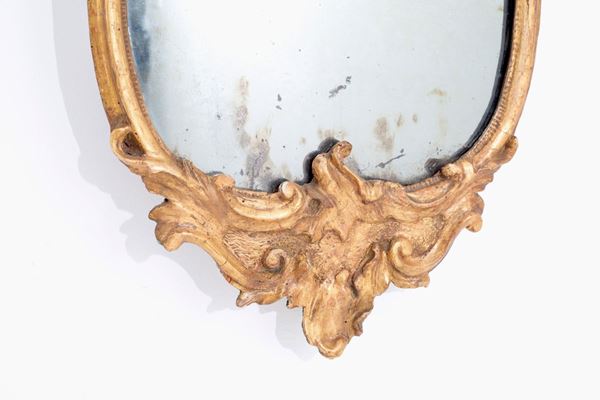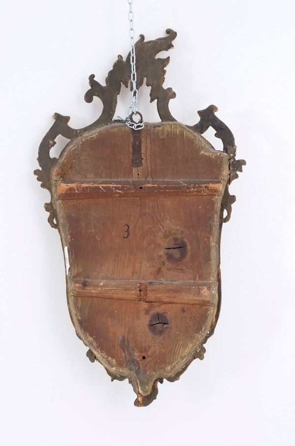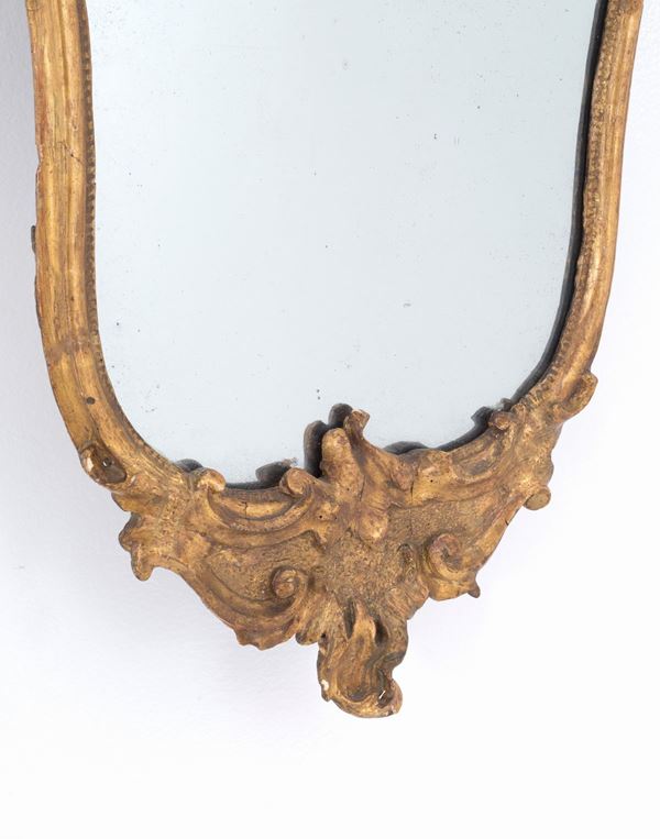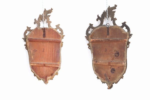 Pair of lamps in carved and gilded turnip skin wood. Lombardy. 18th century. Defects.