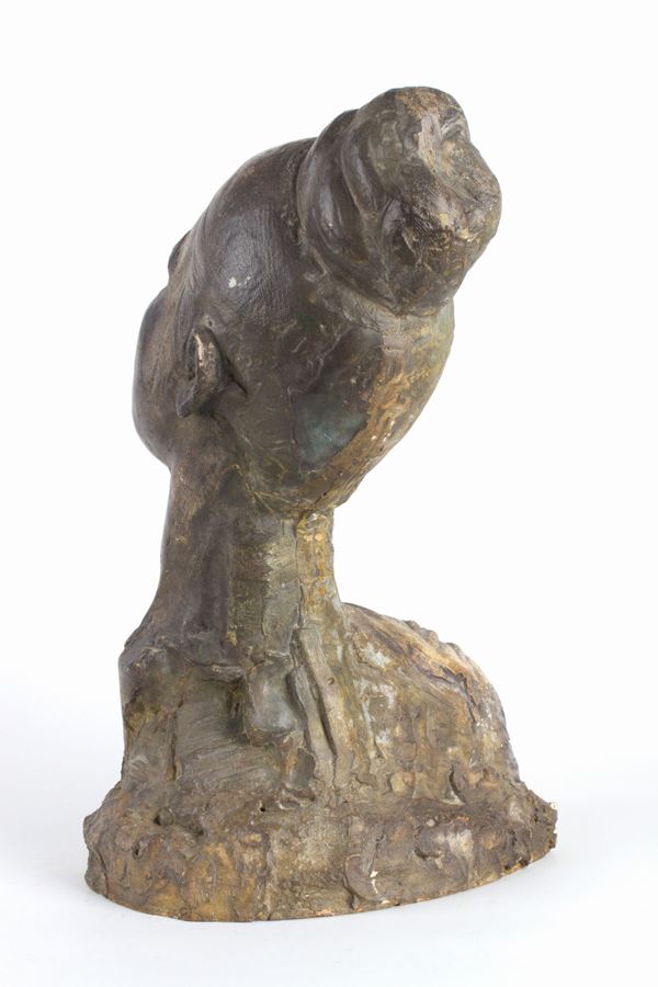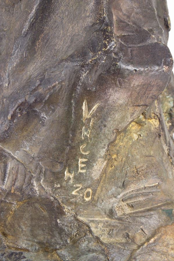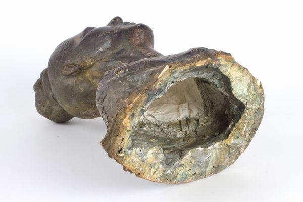 Terracotta sculpture with faux bronze patination depicting "BUST OF A WOMAN". Signed VINCENZO bottom right. 20th century. Slight defects.
