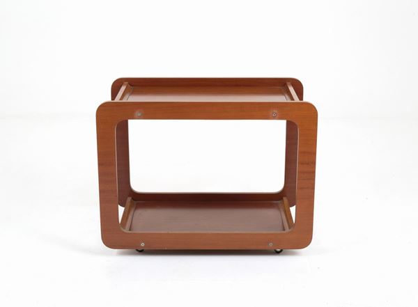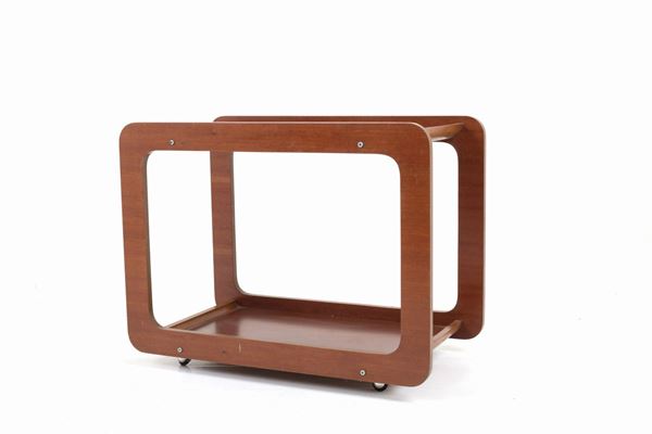 Wooden trolley. Italian manufacturing. 70's. Signs of wear over time.
