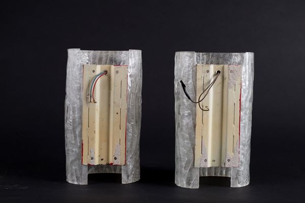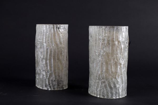 Pair of bark appliques in Murano glass. VENINI production. 60's.