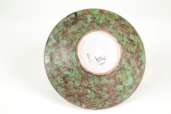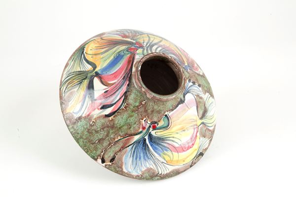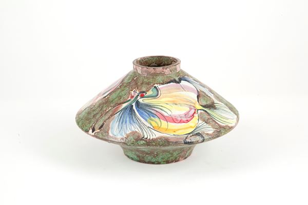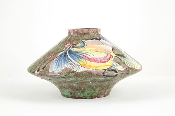 Glazed ceramic vase with polychrome decorations with a marine subject. Signed on the bottom.
