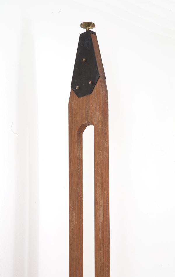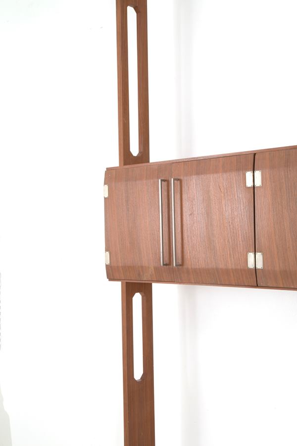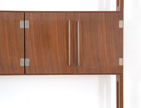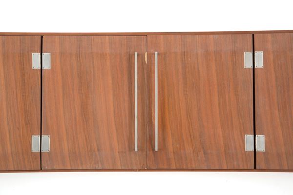 Free-standing bookcase with wood-panelled doors and chromed metal finishes. 70's. Minor defects.