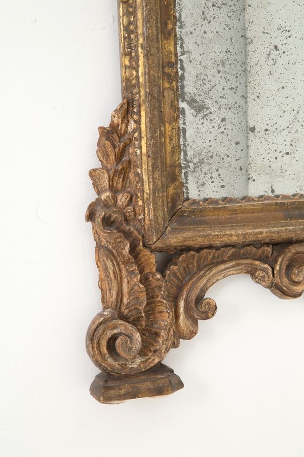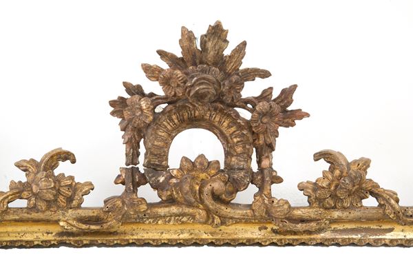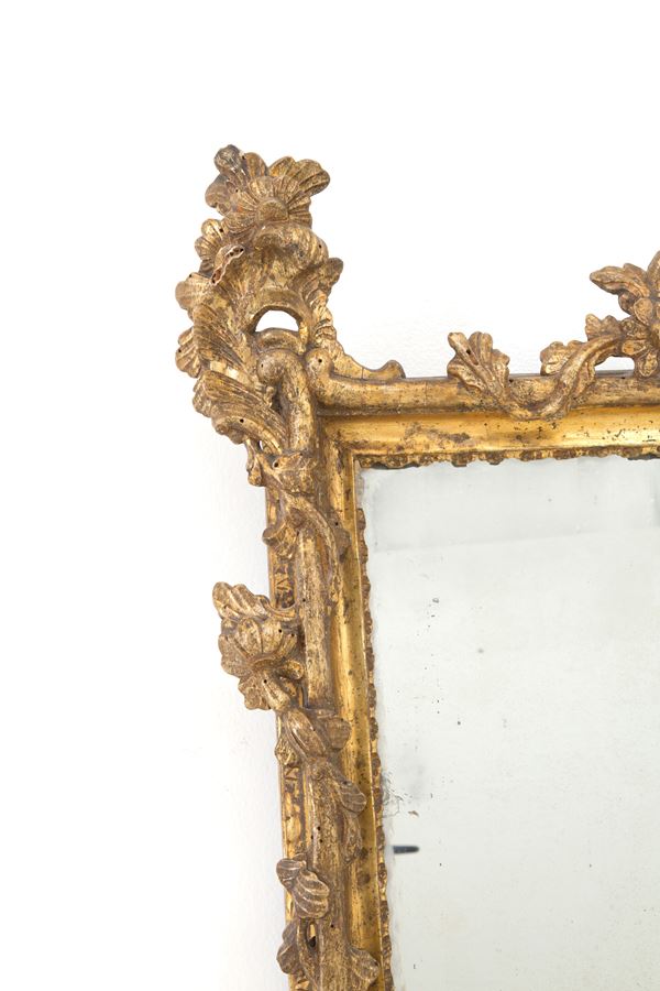 Carved and gilded wooden mirror in Mecca. Naples. 18th century. Minor defects.