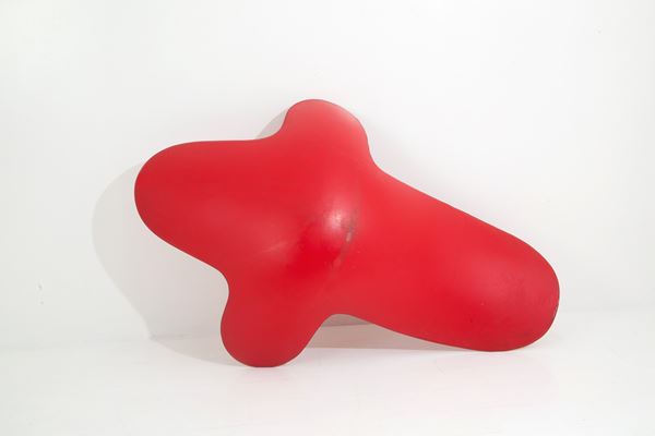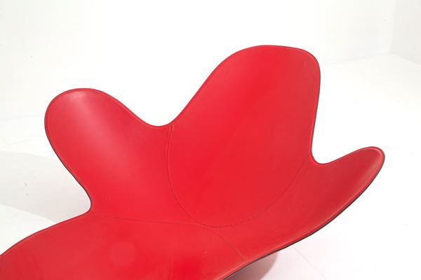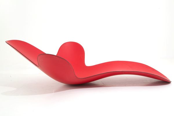 Lazy Mary chaise longue with fiberglass structure and red leather covering. DISGUINCIO production. 90's. Defects and signs of wear and tear over time.