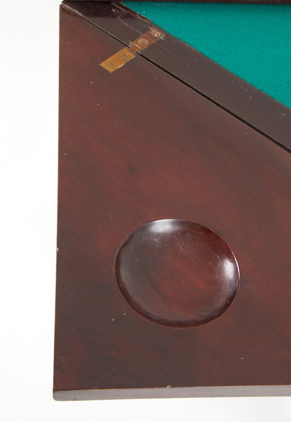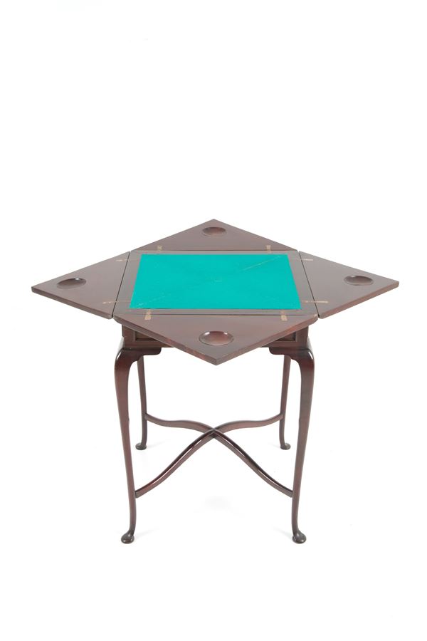 Handkerchief game table in mahogany wood with rotating top. England. 19th century.