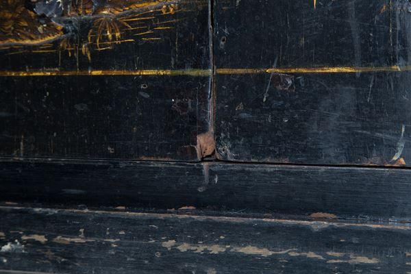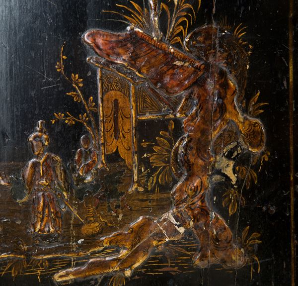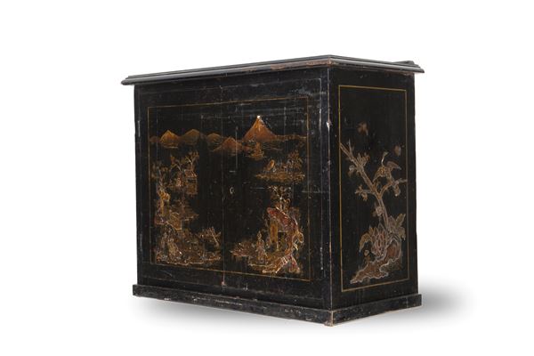 Two-door lacquered cabinet with chinoiserie decorations. England. 19hh century. Defects.