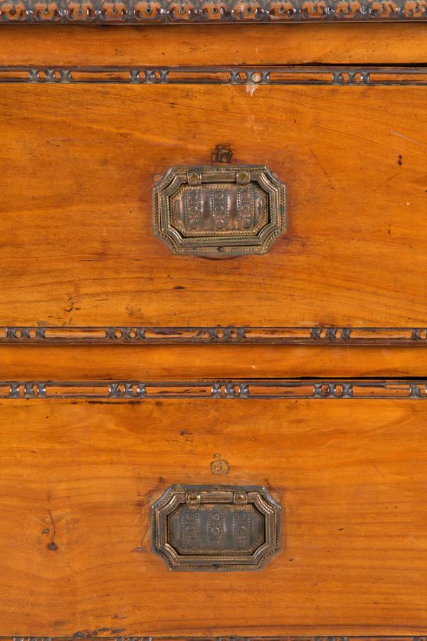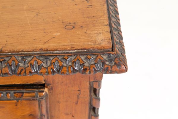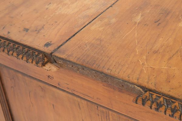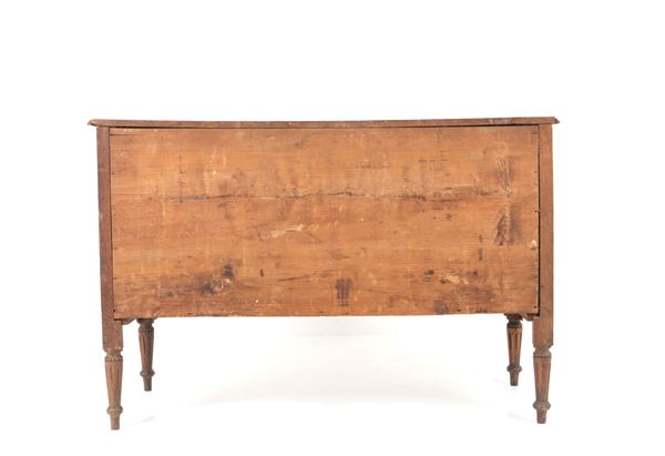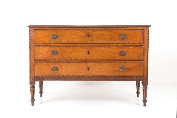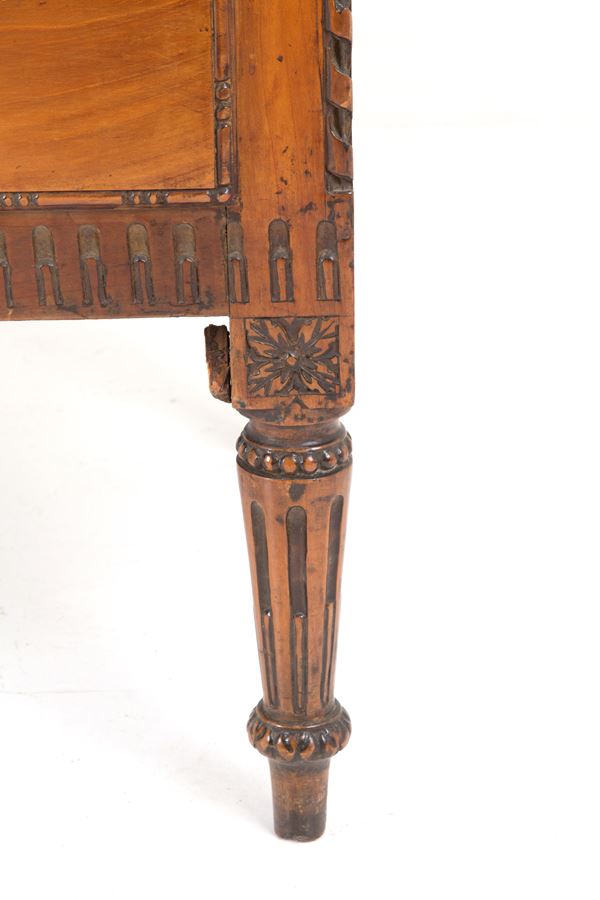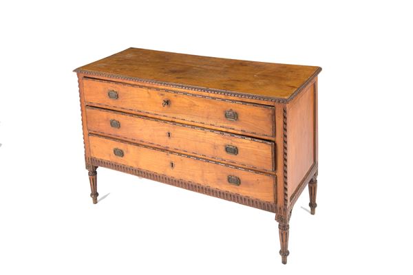 Chest of drawers in cherry wood with finely carved profiles. Veneto. Louis XVI period. Slight defects and shortcomings.